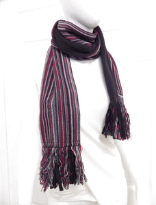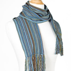 Ce foulard tissé à la main est fait pour réchauffer le cou de l'automne au printemps. Il convient autant pour les femmes, les hommes ou les enfants. Un des côtés est tissé rayé et l'autre est doublé en polar, il est donc réversible. La couleur du polar est indiquée dans la description de la couleur. (Une version sans polar est aussi offerte, référez-vous aux autres produits de la collection.)