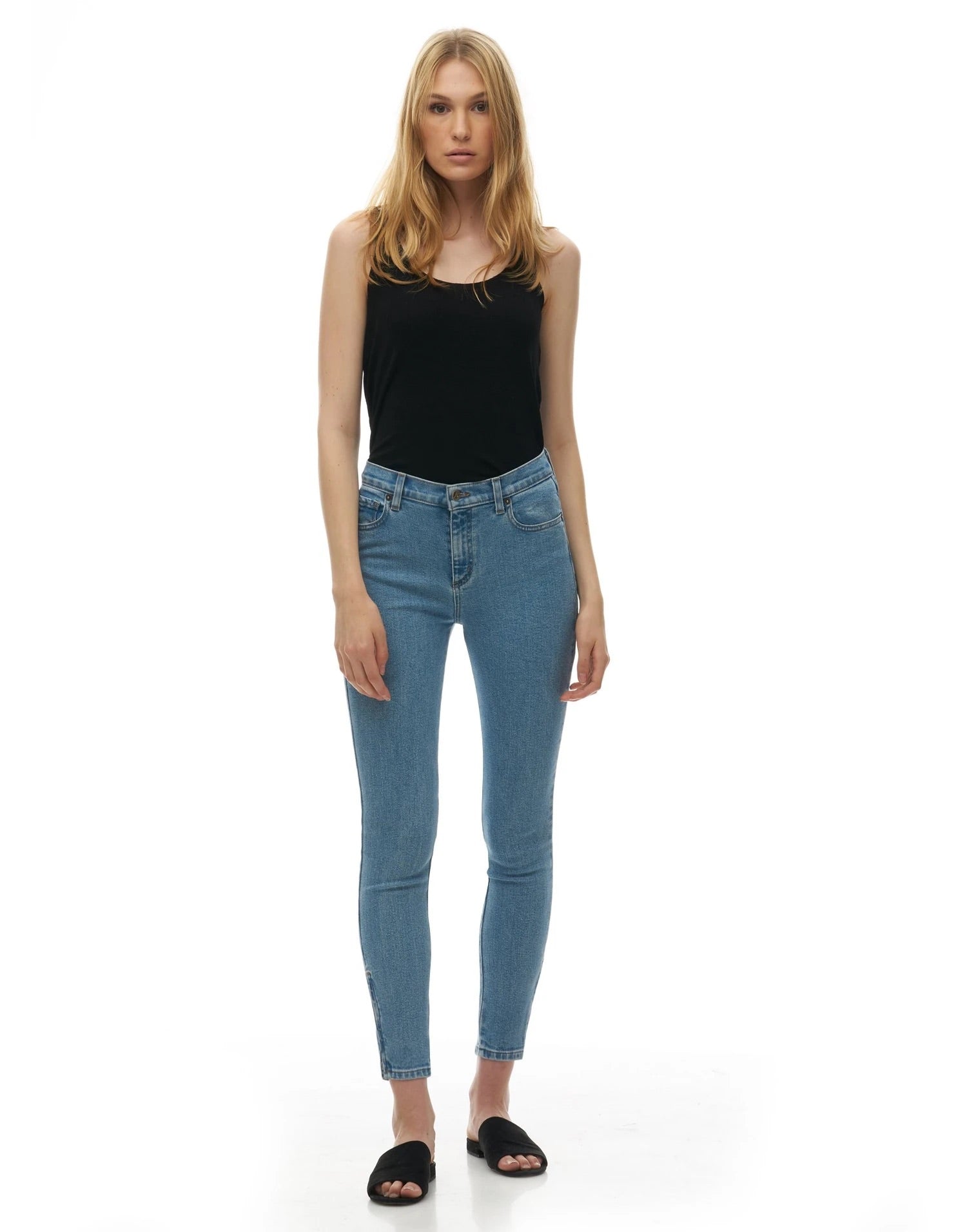 Rachel, notre jeans coupe étroite, est ajustée des hanches aux chevilles et épouse parfaitement les formes du corps, convenant ainsi à toutes les silhouettes. Le type de denim utilisé rend un véritable hommage aux années 90 en offrant le look et la sensation du denim vintage, mais avec tout le stretch et le confort de votre jean usé préféré. La taille haute et la fermeture éclair à la cheville en font le jean parfait pour l’été.