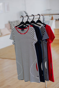 Description courte: Robe semi ajustée « ligne A » fait d’un de bambou souple et tellement confortable! Tissus au tissé “French terri” qui donne une parfaite épaisseur pour flatter la silhouette tout en restant frais et respirant. Super fonctionnelle grâce à ses poches. On craque pour ses rayures, un classique indémodable! La petite robe passe-partout idéale; au travail avec un collant ou pantalon ajusté et de mise avec un leggings 3/4 pour les moments plus détendus et plus chic avec une sandales et accessoires.